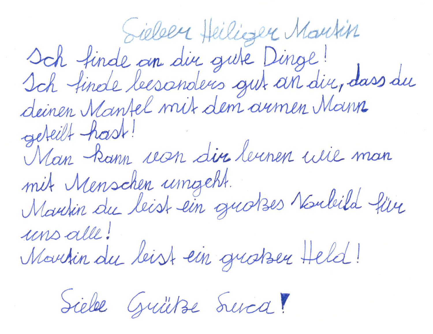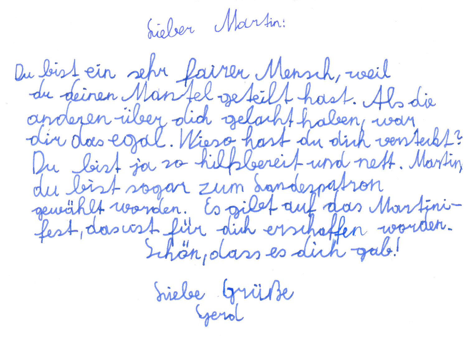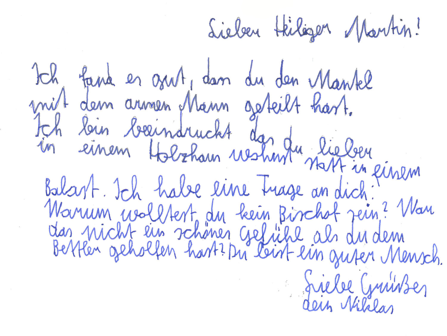Kinder schreiben Briefe an "ihren" heiligen Martin