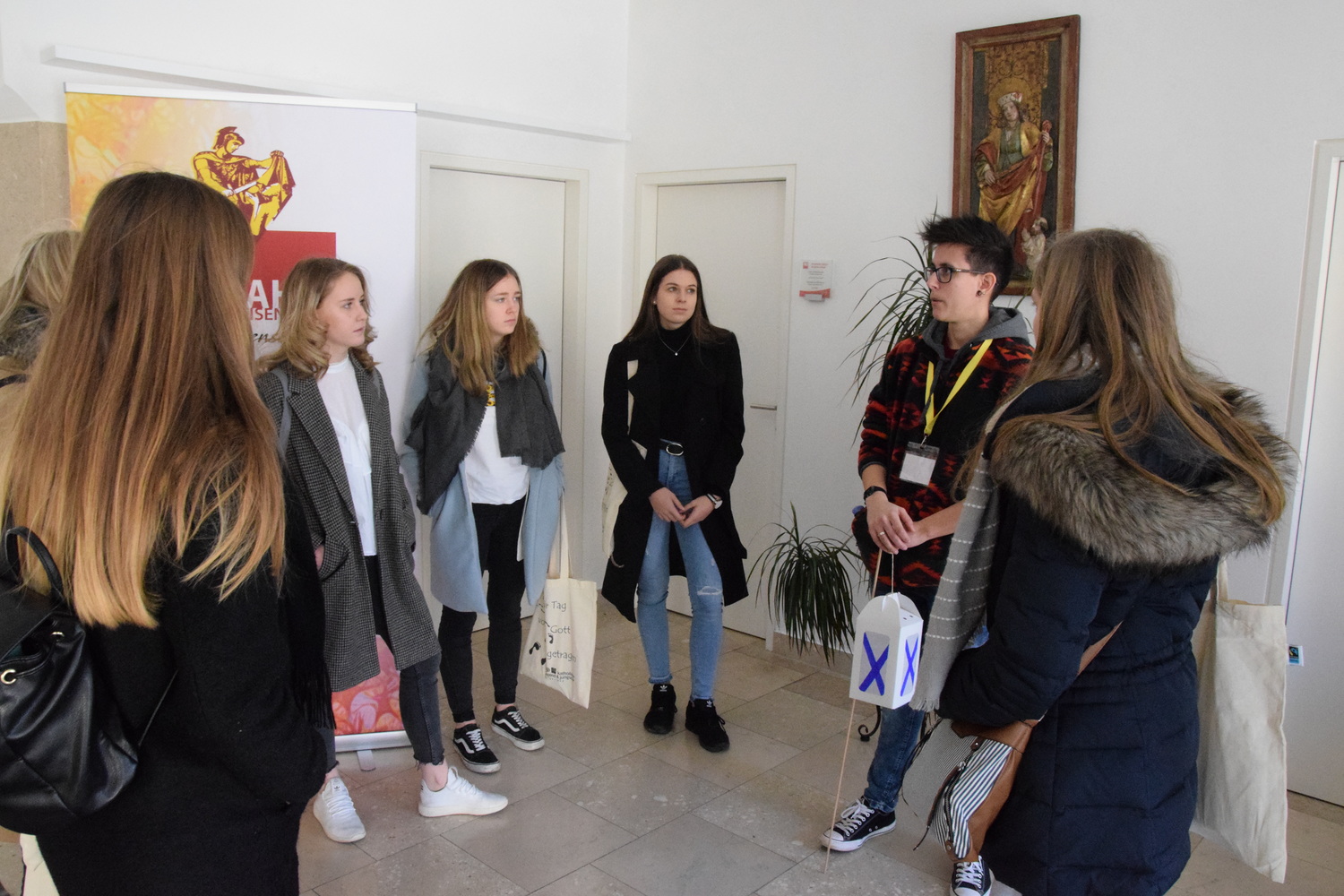 Nach einer Pause wurden die SchülerInnen in geführten Gruppen durch die einzelnen Dienststellen und Abteilungen des Bischofshofs geführt, wo in kleinen Workshops und Talk-Corners mit verschiedenen Vertreterinnen und Vertretern kirchlicher Berufe Begegnungen stattfanden. Die in den Abteilungen wirkenden Expertinnen und Experten gaben Einblicke in ihre jeweiligen Tätigkeitsbereiche, informierten über berufliche Einstiegsmöglichkeiten und luden bei Bedarf auch zum persönlichen Gespräch ein.