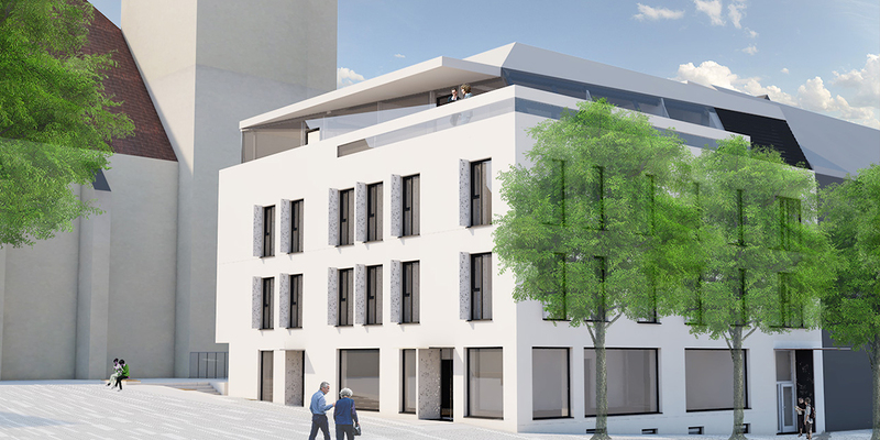 Das Erdgeschoß des neuen Hauses wird für Geschäftsflächen, für öffentlich zugängliche Einrichtungen der Kirche sowie als Information Point, Empfang und Zugang zu den Dienststellen genutzt werden. Das Foyer soll gleichzeitig als Verkaufsbereich für den hauseigenen Martinsverlag in zeitgemäßer Konzeption und Gestaltung fungieren. Es wird in architektonischer Klammer u.a. mit dem seelsorgerischen Beratungsdienst "Dominsel" sowie mit einer allgemeinen diözesanen Informationsstelle mit Seminar- und Lesebereich stehen.