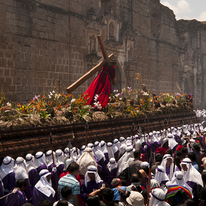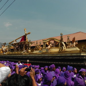 Mit dem Auszug der Statue des "Jesús Nazareno de la de la Merced", dem Kreuz tragenden Jesus, sowie weiteren Szenen der Passion Christi auf einem fast 20 Meter langen und 4 Meter breiten hölzernen Tragegestell, beginnt die erste Prozession der Semana Santa. Mehr als 80 Männer in violetten Kutten, die sogenannten "cucurruchos", empfangen kniend die sogenannte "anda", das reich geschmückte Gestell, mit der prominenten Jesusfigur im Zentrum. Blasmusik und Trommeln begleiten den Moment, als sich zeitgleich die Männer erheben und mehr als drei Tonnen auf ihren Schultern in die Höhe stemmen. Langsame, schwere Trommelschläge geben den Takt vor, in dem die "cucuruchos" beginnen, sich wippend zu bewegen, bevor der erste Schritt getan wird, und die Prozession bis zu zwölf Stunden über die kunstvoll geschmückten Pflastersteine der ehemaligen Hauptstadt des Landes zieht.