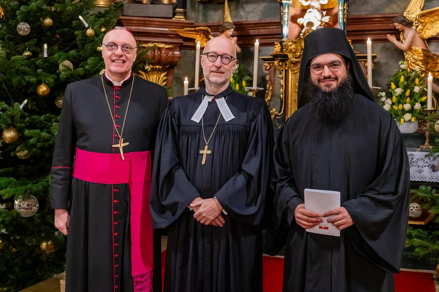 Gemeinsam feierten Bischof Ägidius Zsifkovics, Superintendent Robert Jonischkeit und Pater Raphael von der Metropolis Austria. Das Leitmotiv der Gebetswoche 2026: "Ein Leib und ein Geist, wie ihr auch berufen seid zu einer Hoffnung in eurer Berufung" (Eph 4,4). Im besonderen Blickpunkt der Gebetswoche stehen dieses Jahr die Christen in Armenien, die im 20. Jahrhundert verfolgt wurden und seit 2023 aufgrund ihres christlichen Glaubens verfolgt werden.