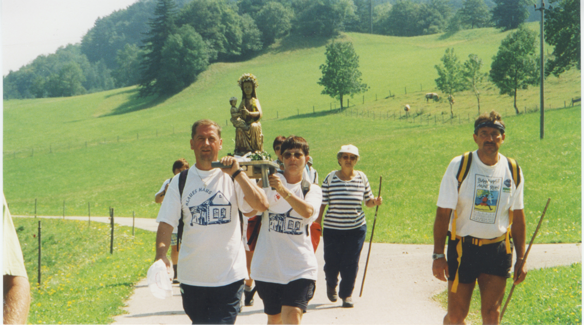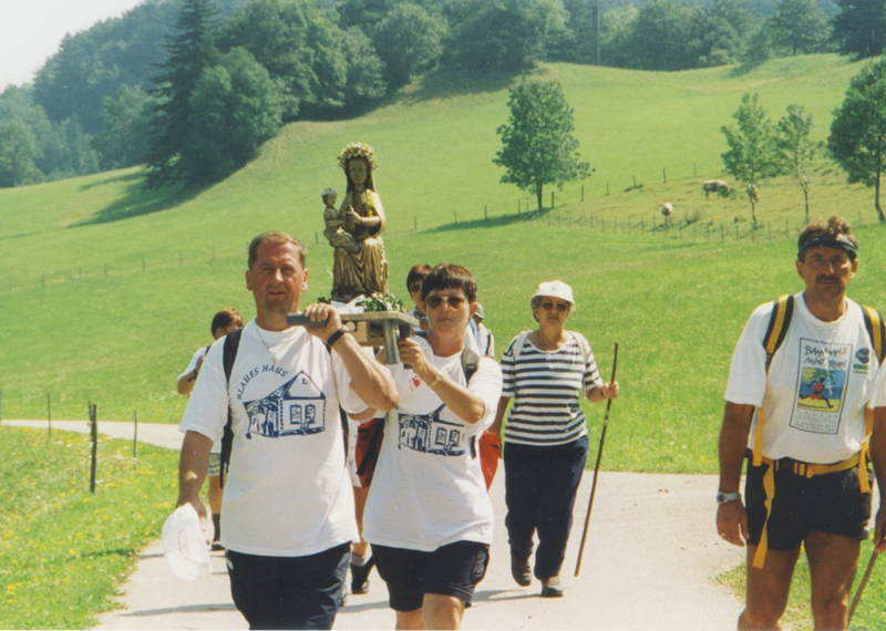 1999 brachten die Trausdorfer die Statue der Muttergottes zu Fuß nach Mariazell zurück. Berührend war die Verabschiedung der Trausdorfer am 29. August von der Mariazeller Wandermuttergottes, die sie der Jugend von Neudorf übergaben.