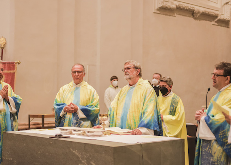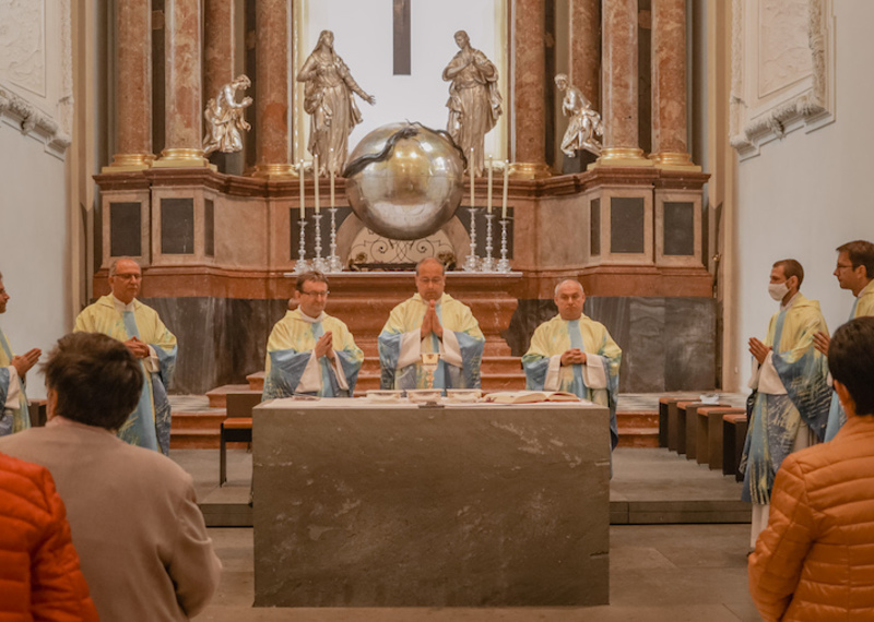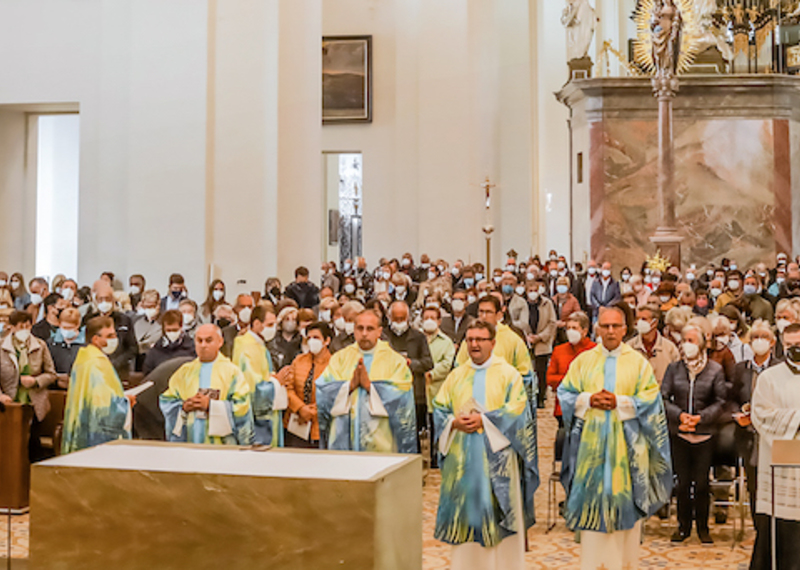 Um 10:00 Uhr feierten die diesjährigen Silbernen Priesterjubilare die Eucharistiefeier beim Hauptaltar: Hauptzelebrant der hl. Messe war Mag. Lic. Roman Frydrich, die Predigt hielt Hw. Josef Kuzmits und gemeinsam mit Mag. Zdravko Gašparićem auch eine Meditation nach der Kommunion. Die Intention der Jubilare war, Gott zu danken, dass er sie in die Nachfolge gerufen hat und sie nunmehr 25 Jahre in der Kirche und den Gläubigen dienen können. “Wir haben versucht, mit den uns von Gott geschenkten Talenten und in Hingabe, die uns übergebenen Aufgaben so gut wir konnten zu erfüllen und Euch Überbringer der Freude, des Friedens sowie eine Brücke zwischen Gott und dem Menschen unserer Zeit zu sein”, hob Hw. Kuzmits in der Predigt hervor und lenkte den Blick der Gläubigen auf “die Königin der Apostel und Mutter der Priester, die unserer Diözese und unserem Volk die so notwendigen geistlichen Berufe erbitten möge”. Im weiteren stellte er das Wesen des priesterlichen Dienstes sowie Maria als Mutter der Priester und Mutter der Kirche vor.