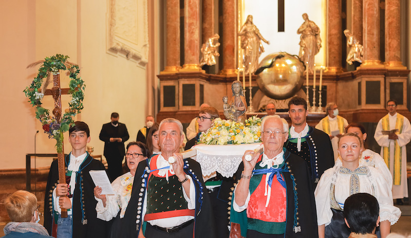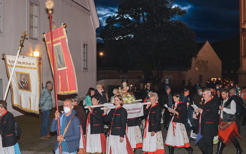 Aber Gottes Wege sind dennoch anders. Es kam die Pandemie und die gemeinsame Wallfahrt der Burgenländischen Kroaten nach Mariazell konnte nicht wie vorgesehen stattfinden. So war dieses Jahr sowohl bei den Wallfahrern wie auch bei den Organisatoren die Freude sehr groß, dass sie – wenn auch unter den Sicherheitsmaßnahmen der noch immer herrschenden Coronapandemie – drei Tage vom 27. bis 29. August gemeinsam feiern, beten und Gott, der Gnadenmutter von Mariazell und einander begegnen konnten.