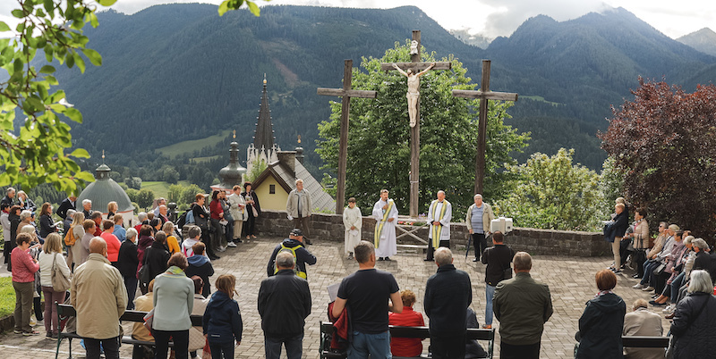 Am Samstagnachmittag wurde um 14:30 Uhr der Kreuzweg auf dem Kalvarienberg in der wunderschönen Landschaft von Mariazell gebetet. Eine schöne Schar von Gläubigen ging den steilen Weg von Station zu Station mit, mit dem was sie persönlich belastet, den je eigenen Sorgen und Schmerzen, die sie dem leidenden Jesus empfahlen. Eine kurze Betrachtung hielt auf dem Kalvarienberg Diakon Mag. Marinko Kelava. Ein kleines Zeichen, dass Gott voll Güte auf sein Volk schaut, war auch das Wetter: als der Kreuzweg zu Ende war, fing es an zu regnen - ebenso am Abend als die Lichterprozession beendet war.