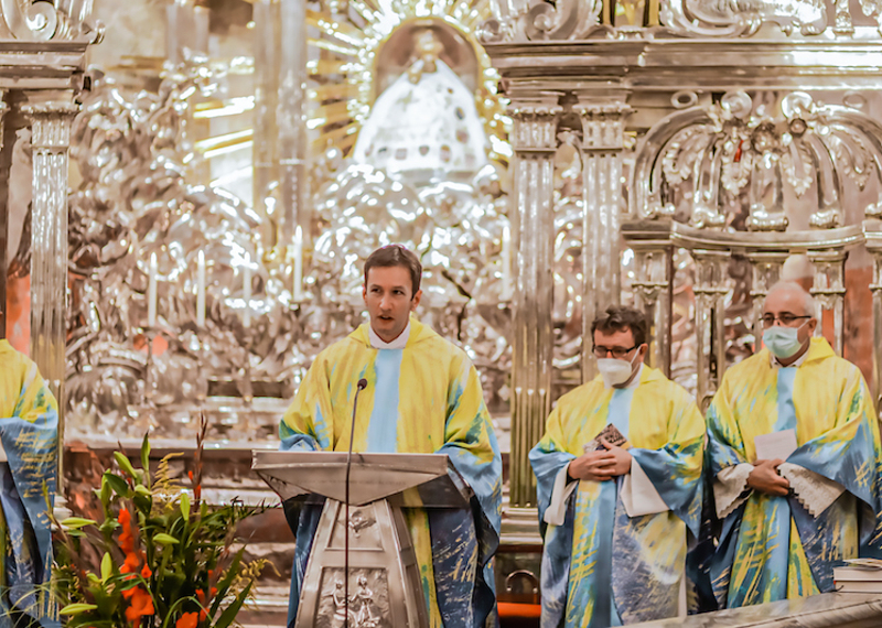 Am Freitag, 27. August wurde die Wallfahrt um 18:30 Uhr mit dem feierlichen Einzug und dem ersten Gottesdienst beim Gnadenaltar eröffnet. “Hausherr” P. Dr. Michael Staberl OSB und Wallfahrtsleiter Bischofsvikar Kan. Mag. Željko Odobašić richteten einen herzlichen Gruß an alle anwesenden Gläubigen und die mitfeiernden neun Priester. Die heilige Messe feierte Neupriester MMag. Ivan Vukčević. Obwohl aus Montenegro abstammend, feierte er die Messe mit Predigt in burgenländisch-kroatischer Sprache. Er hob hervor, dass Reisen “schon seit früheren Zeiten einen mutigen Schritt des Einzelnen bedeuteten, um etwas Neues, etwas Anderes als sich selbst zu sehen und zu erfahren - so sagt man auch heute, dass Reisen heilsam sind für jeden Nationalismus, jede Misanthropie und Exklusion.” Der Christ, der Katholik hat eine besondere Reise als Mittel, um sich selbst kennenzulernen: die Wallfahrt.