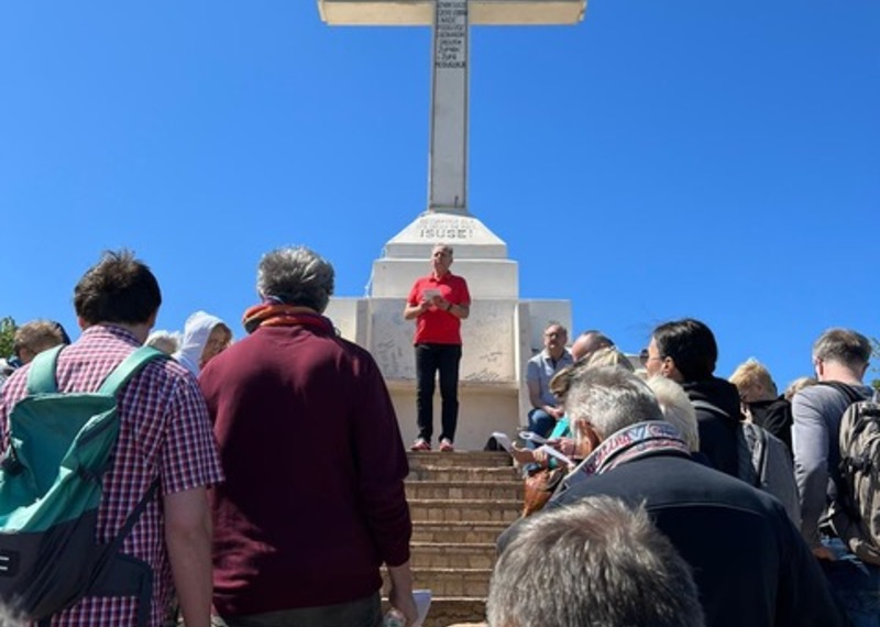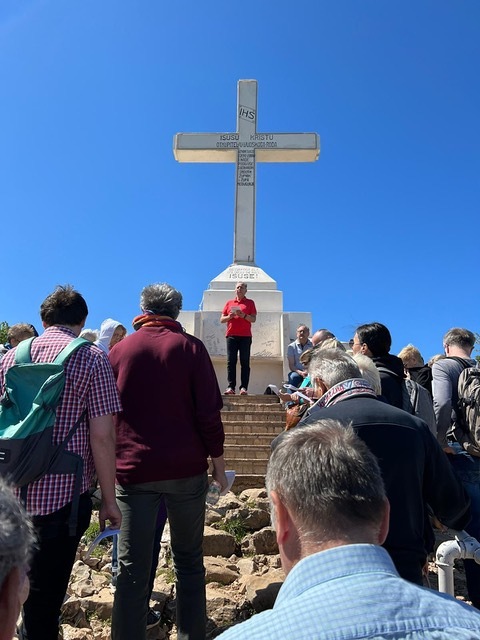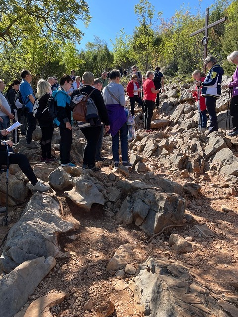 Anstrengend war der Aufstieg mit Kreuzwegandacht auf den Berg Križevac. Dieser mühevolle Gang erinnerte jeden von uns an unsere je eigenen Lebenswege. Oft geraten wir im Leben in Schwierigkeiten, begegnen uns Kreuze, die wir meinen nur schwer tragen zu können, aber wenn wir bei Gott Hilfe und Halt suchen, erhalten wir neue Kraft und können weitergehen.