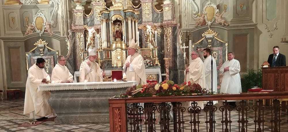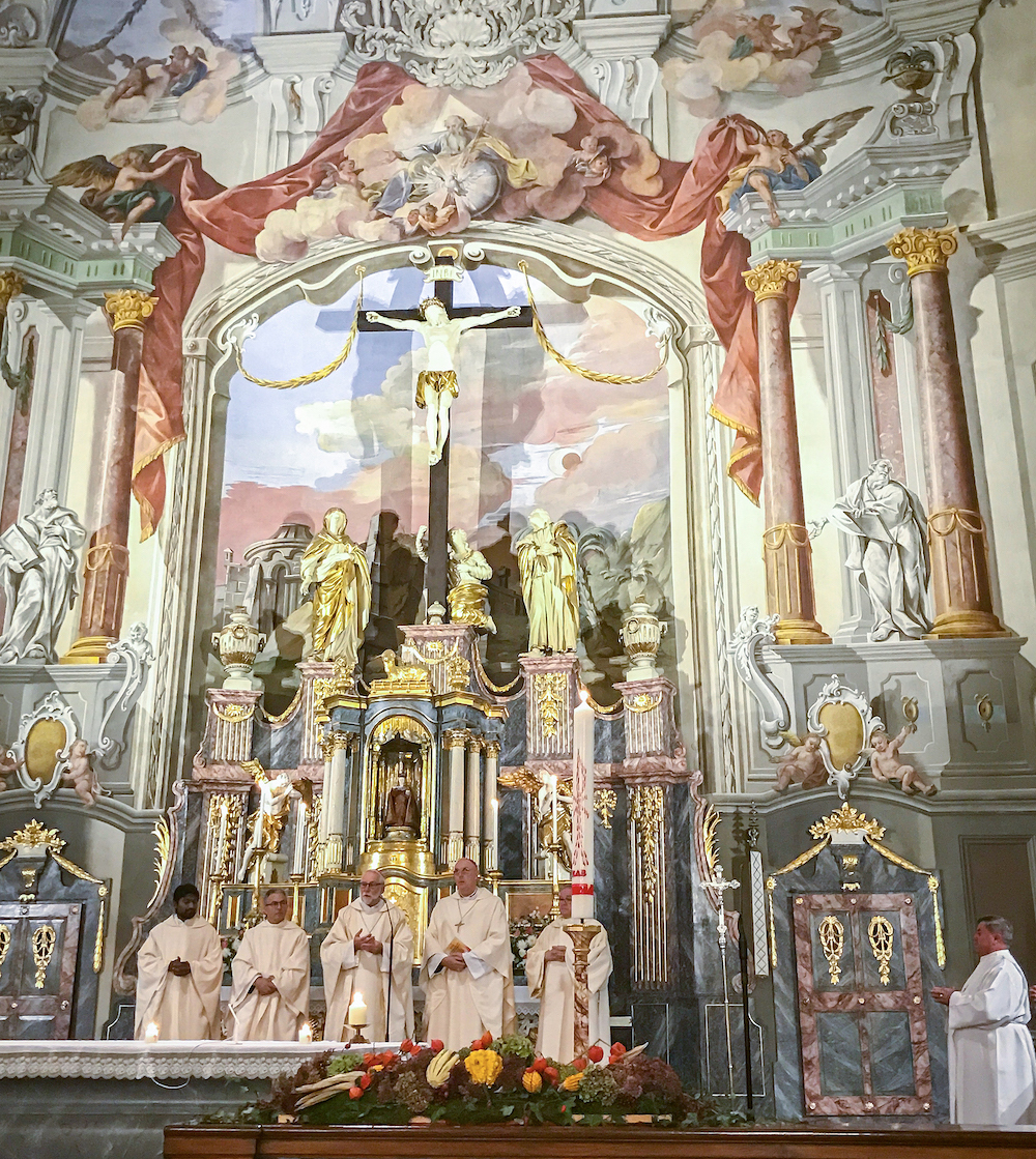In der Basilika feierten der Bischof der Diözese Gurk-Klagenfurt, Dr. Josef Marketz, und der Eisenstädter Diözesanbischof, Dr. Ägidius Zsifkovics, gemeinsam die heilige Messe. Es konzelebrierte auch der Ortspfarrer, der sein 25-jähriges Dienstjubiläum in dieser Gemeinde feierte. Die Mitglieder des Pfarrgemeinderates gratulierten ihm und überreichten ein Geschenk.