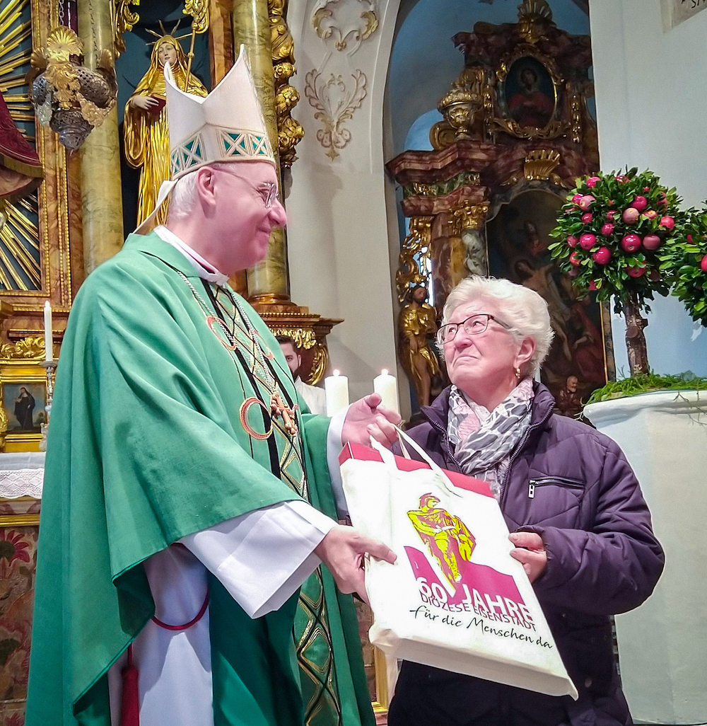 Am Sonntag, 9. Oktober, trafen sich die PilgerInnen zur Messfeier in der Klosterkirche in Ossiach, die um 11:00 Uhr Bischof Dr. Zsifkovics mit dem örtlichen Pfarrer feierte, ein. Gleichzeitig wurden treue TeilnehmerInnen der Arbeiterwallfahrt geehrt – unter ihnen Frau Hildegard Vlaschitz aus Klingenbach, die bereits 55mal teilgenommen hat.