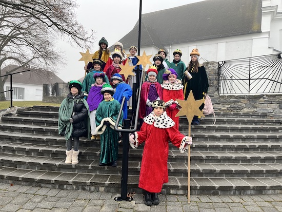 Die Heiligen Drei Könige besuchten die Gläubigen in Baumgarten. 16 Kinder waren unterwegs um den Menschen in der Pfarre die frohe Botschaft zu bringen.