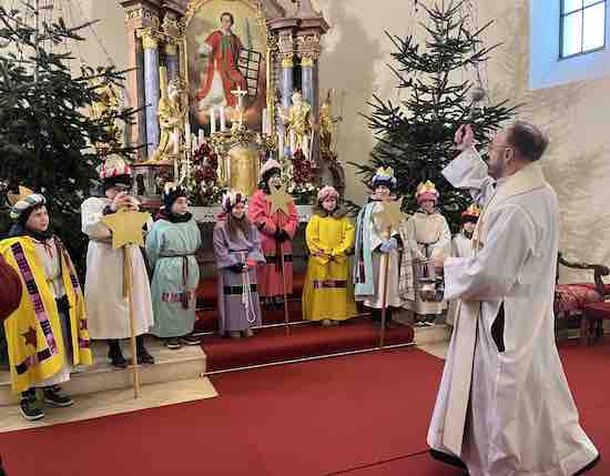 Der Pfarrer von Nikitsch P. Božidar Blažević OFM, segnete die Könige feierlich, bevor sie die Bewohner von Nikitsch besuchten. Herzlichen Dank an die Kinder, Königinnen und Könige des Jahres 2025 – Konstantin, Adam, Johannes, Karoline, Anna, Elena, Valentina, Sara und Letizia – welche die Gläubigen gerne besucht haben.