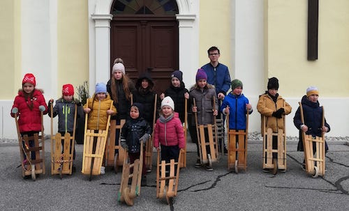 Die Ministrantenbetreuer Christopher und Silvia Knar organisierten gemeinsam mit den Eltern nach zwei Jahren Pause, in denen es wegen der Coronapandemie nicht möglich war, wieder ein Osterratschen in Frankenau.