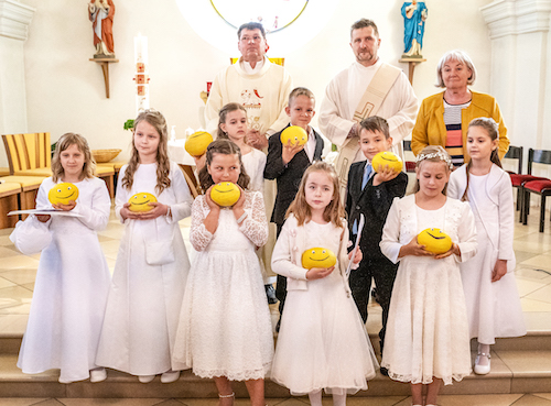 9 Kinder empfingen am 14. Mai in Zagersdorf zum ersten Mal den Leib Christi. Sie hatten sich schon seit November auf die Erstkommunion vorbereitet.