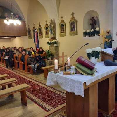 Schulkinder beteten den Rosenkranz in Kohlbenhof (Kópháza)