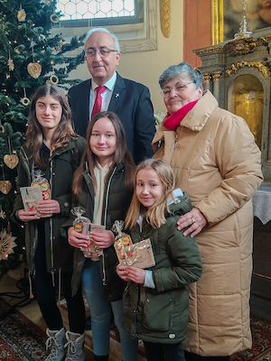 Farnik mmag. Franjo Borenić i farska savjetnica Gabi Laczko oprostili su se od dugoljetnih miništrantov - Lara Ambrusch, Maya i Hannah Schmid ter Hanna Eidler, ka nije na sliki. Hvala za dobru suradnju!