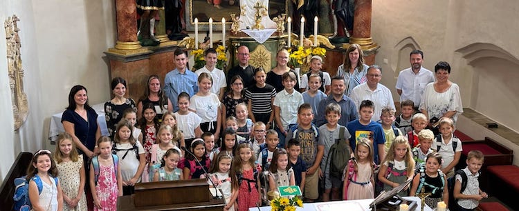 Po staroj navadi na početku novoga školskoga ljeta se je napunila velika crikva u Petrovom Selu. Svi školari i učitelj s direktoricom Anom Timar Škrapić i s roditelji i stari roditelji su se skupaspravili na svetu mašu, da se s božjim blagoslovom počinje novo školsko ljeto. Mašno slavlje je služio domaći farnik vlč. Tamás Köbli, ki je pred ljeto dan na prik zeo faru Petrovo Selu. Od 1. augusta farnik Tamás Köbli je dušobrižnik polag Petrovoga Sela u Pronovi (Pornóapáti / Pernau) i u Hrvatski Šica.