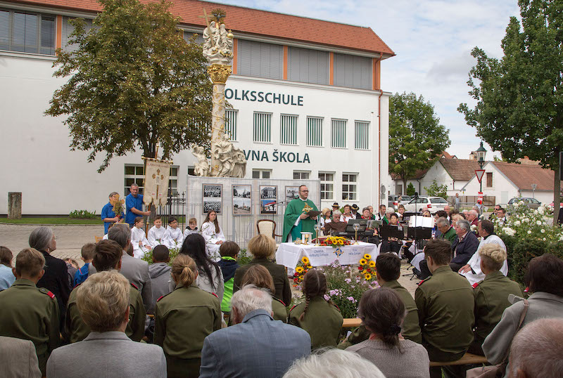 Svetačna sveta maša bila je pred crikvom a po sv. maši bila je priredjena agapa za sve. Došli su mnogi vjerniki, zastupniki općine i društav ter su se zahvalili farniku mag. Grandiću.