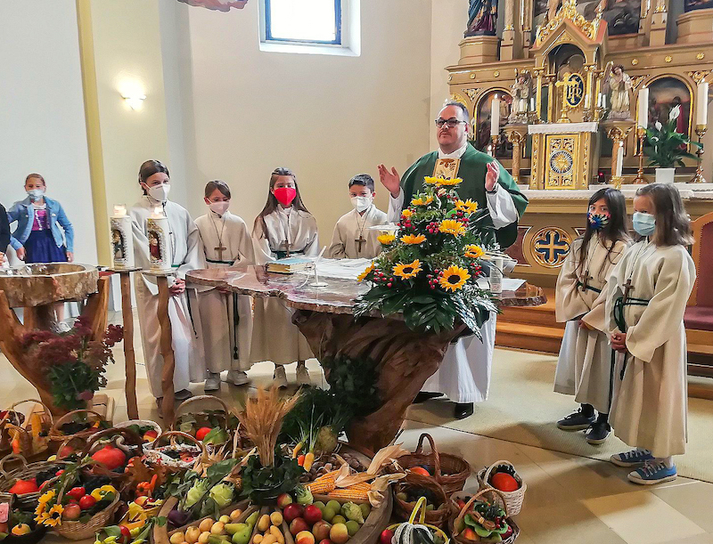 Svaku jesen su oltari u crikva šaro ukrašeni voćem, povrćem, žitom i cvijećem, da proslavu dan zahvalnosti. Ljudi su uvijek imali želju, da se zahvalu Bogu na dari prirode; spominjaju se, da imati dovoljno hrane ne odvisi u potpunosti o ljudi.