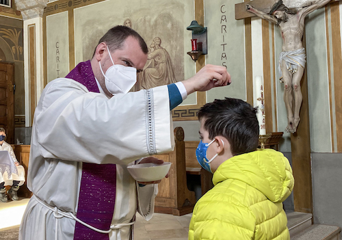 Na Čistu srijedu su školarice i školari osnovne i nove sridnje škole Svetoga Mihalja svečevali početak korizmenoga vrimena u crikvi. Mjesni farnik mag. Kurt Aufner i dijakon mag. Vili Jandrišić su skupa s školari/cami i učiteljstvom svečevali dvojezičnu službu riči s pepeljenjem. Dica obadvih škol su čitala hrvatske i nimške tekste, ke su pripravile vjeroučiteljice Nicole Horvatić i Katarina Stipšić. U svoji teksti su izrazili prošnju za mir na ovom svitu, osebujno u Ukrajini.
