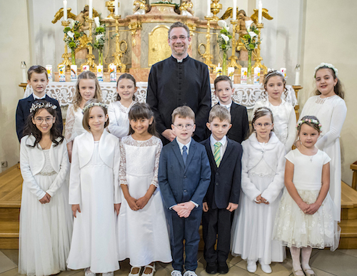 Na Bijelu nedilju, 24. aprila je bilo prvo pričešćanje u Vulkaprodrštofu. 13 dice je primilo po prvi put Tijelo Kristuševo. Priprava na prvo pričešćanje je stala pod geslom “Jezuš je svitlost svita”. Dicu pripravio je na prvo pričešćanje u školi vjeroučitelj dice farski moderator mmag. Štefan L. Jahns ter uzato i majke i jedan otac. Svetačnu sv. mašu oblikovali su kotrigi “Poljancev” i kantor Sascha Baumgartner. Čuda ljudi je sudjelovali pri sv. maši.