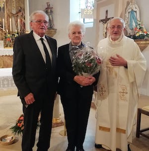Naš farnik Branko Kornfeind blagoslovio je jubilare i upozorio nas, da se ovakovi jubileji u današnjem času neka i očividno svečuju, ar su znak medjusobnoga poštovanja i ljubavi. Obadvim jubilarskim parom željili su farnik i vikarica u ime farske zajednice još čuda ljet u zdravlju, radosti i ljubavi.