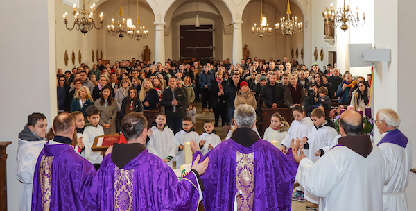 Svetu mašu u 11.00 ura je svečevao vikar provincije franjevcev p. Janko Ćuro OFM i tajnik provincije p. Damir Pavić OFM s peljačem misije p. Božom Blaževićem OFM i farniki p. Zoranom Tadićem OFM i s vlč. Franom Radekom. Vjerniki su na standardnom hrvatskom jeziku molili i pjevali a potom tancali i plakali od radosti, ar su se ćutili kot doma, rekao je peljač misije p. Božidar.
