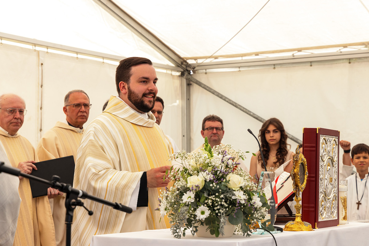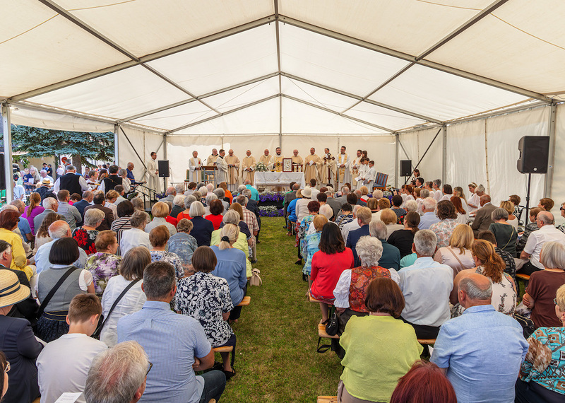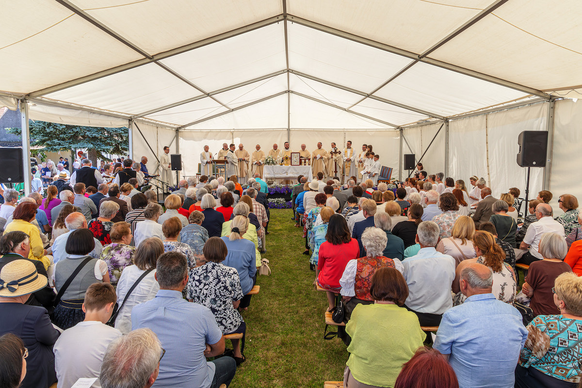 Svetačna mlada maša se je vršila u farskom vrtu pod šatorom. 11 duhovnikov i uz sudjelovanje oko 300 vjernikov je p. Aron prikazao svoju prvu svetačnu mašu, primiciju. Za svetačnoga prodikača si je pozvao biškupskoga vikara p. Karla Schauera, benediktinca iz St. Lambrechta.