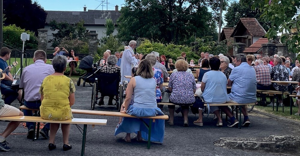 A nedilju, 30. julija služio je farnik svetačnu sv. mašu u farskoj crikvi. Pri svi tri sv. maša razložio i tumačio nam je važnu ulogu sv. Ane za sve majke a osebujno za sve obiteljske staliže. Muzikalno pratili su farnika pri svi tri sv. maša s velikim uspjehom njegovi vjerni “Tamburaši Martin, Michael i &.”. Osebujno presenećen bio je farnik, kada je petak morao zbog čemernoga vrimena prekinuti sv. mašu i prosio sve vjernike na daljnje svečevanje u crikvi i kako disciplirano su mu prošnju uslišili. Dao sam farniku slijedeći odgovor: “Dobroga pastira naslijedi njegova črijeda uvijek rado!” Hvala svim pomagačem i suradnikom pri svi priredba.