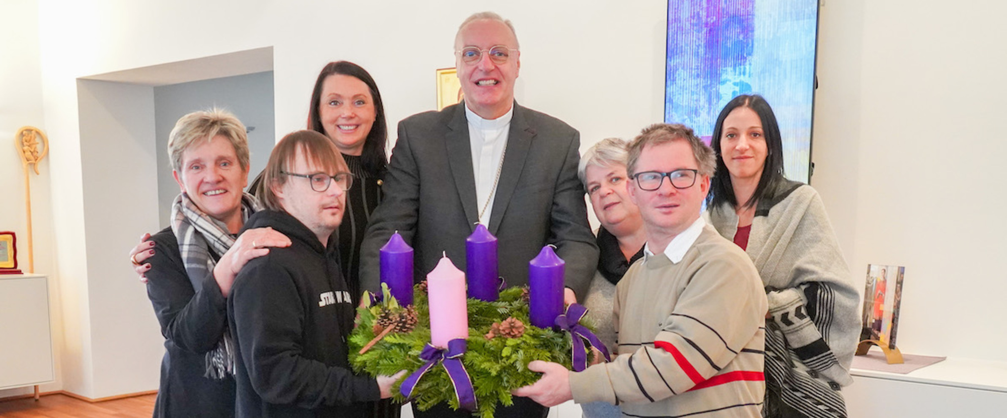 Stanovniki Karitasovoga stana “Vitus” doprimili su utorak, 5. decembra adventski vijenac na biškupski dvor u Željezno.
