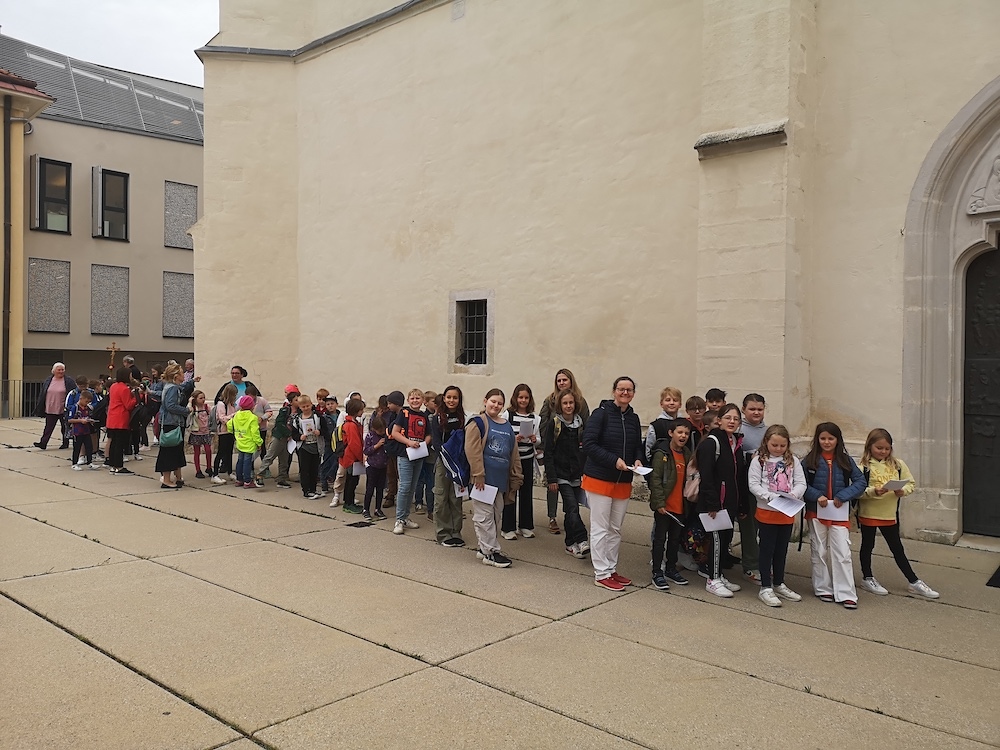 Mi, osnovna škola Kalištrof i Bajngrob smo bili diozematelji na ovom ugodanom shodišću. Putovali smo s busom u Željezno. Onde smo se otšetali u katedralu sv. Martina kade smo skupno s biškupom dr. Egidijom Žikovićem i prik 600 nazočne dice i učiteljstva svečevali i oblikovali svetu mašu.