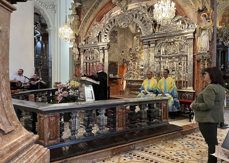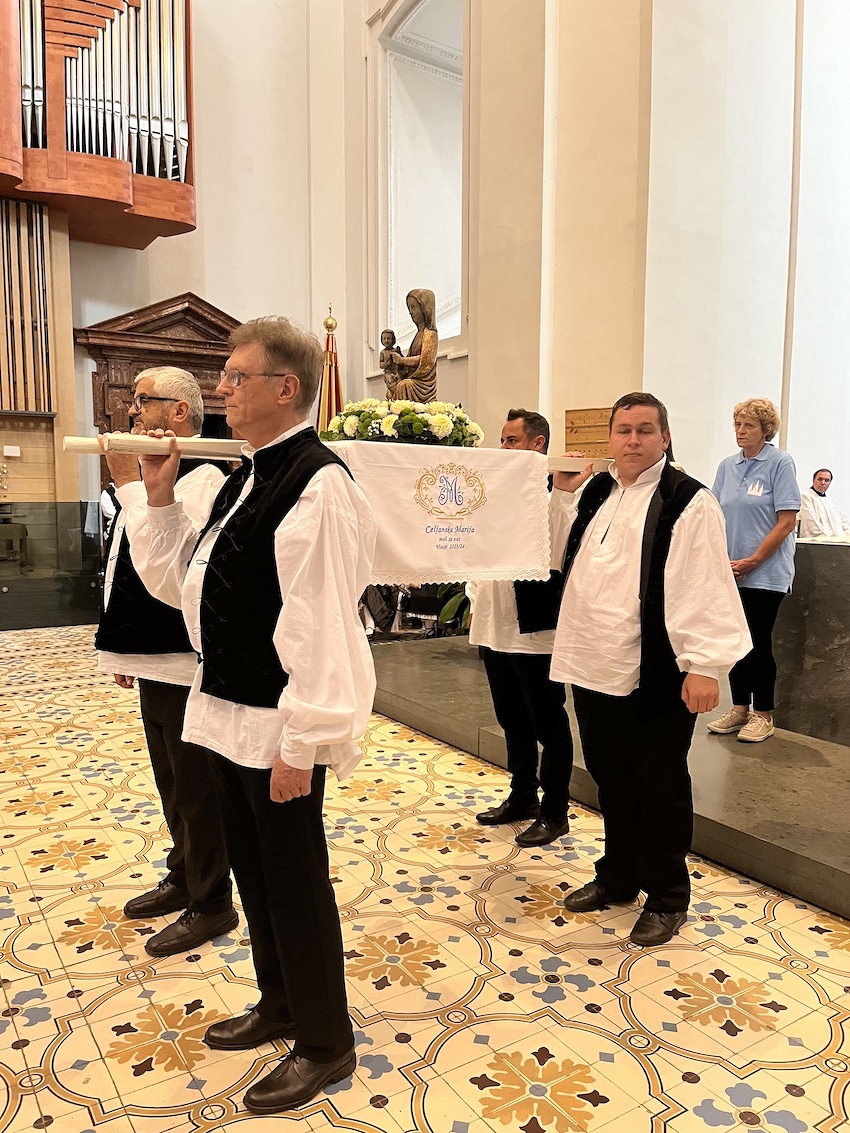 Po svetoj maši je bio ophod sa svićami. Bilo je jako ganutljivo viditi, koliko vjernikov si je nakanilo, da dojdu u naše staro hodočasno mjesto u Štajersku, u Celje. Ova brojka, rijeka hodočasnikov nam daje ufanje, da nas je još, da je još Gradišćanskih Hrvatov, kim je važno i hrvatstvo i vjera. Hrvati i vjera su bili svenek usko povezani kroz cijelu povijest. Ova prilika je svidočanstvo, da je još ufanja. Drugo, ča nam mora biti motivacija, da je bilo ovo ljeto čuda dice i mladih. Mladina, dica su nam budućnost. Kako se oni socijaliziraju, kako ćedu nje roditelji othraniti, nije sve jedno. Ov vikend u Celju nam je pokazao, da ima nas. Vjerniki su jačuć išli kroz hodočasno mjesto. Bilo je ganutljivo, čuti naše lipe hrvatske marijanske jačke, ke su zauzele cijelo mjesto.