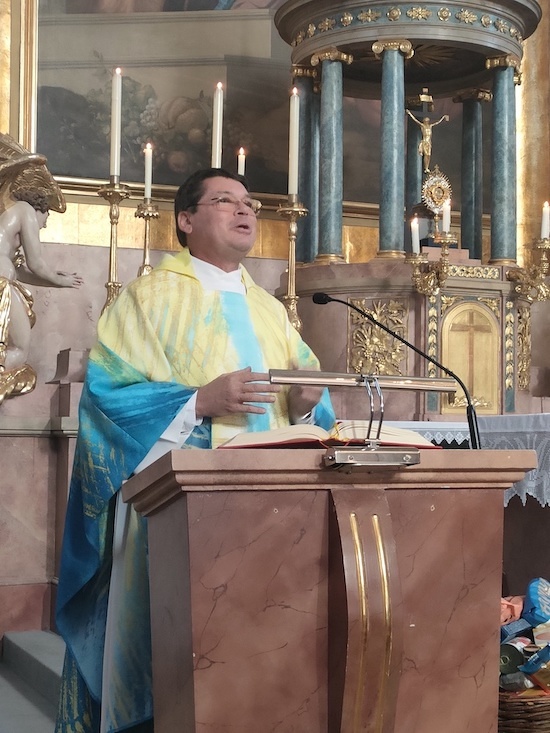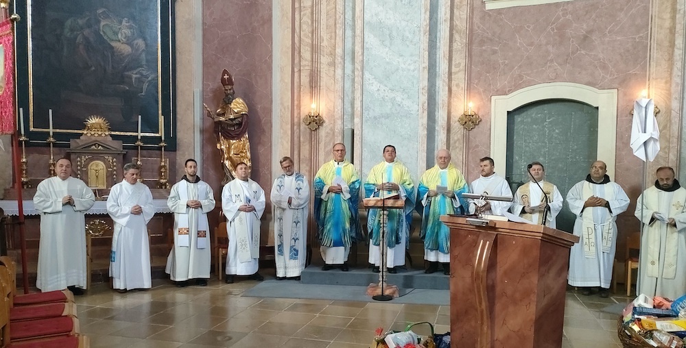 Glavni celebrant vlč. Raimann je na početku svete maše govorio o očenašu, ki je svim nam važan, a isto tako ima veliku ulogu i na kraju žitka jednoga človika, kada mu se ispunu dani i mora se preseliti u vječni žitak stavi se očenaš na ruke. U svojoj prodiki vlč. Štefan Raimann govorio za verline Blažene Divice Marije, ke je povezao s korunom, ka je bila ispletena za žetvenu zahvalnicu. Dobili smo lijepu sliku Majke Božje zahvaljujući prodikaču ovoga shodišća. Vrline, ke je spomenu glavni celebrant, su bile pobožnost, poslušnost, pripravnost i poniznost, ke su korunile žitak Blažene Divice Marije.