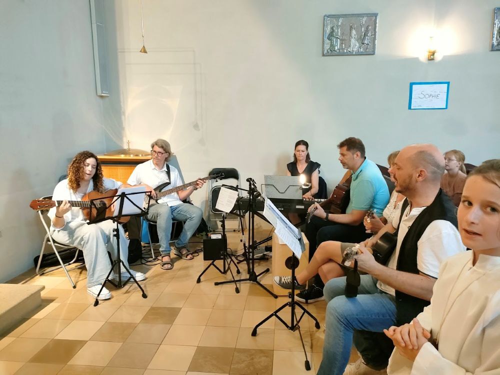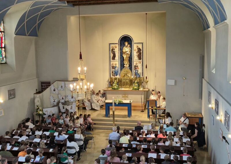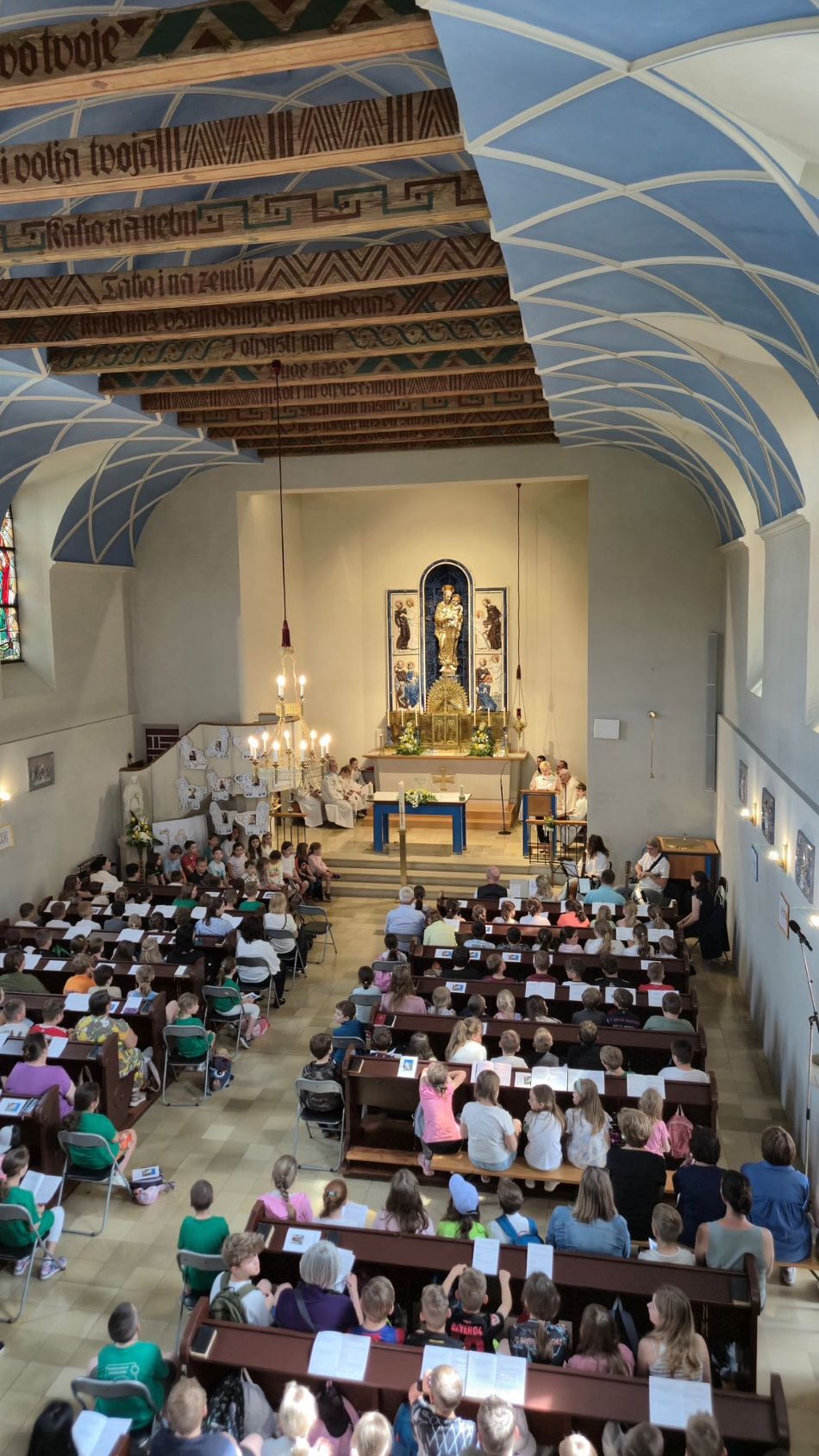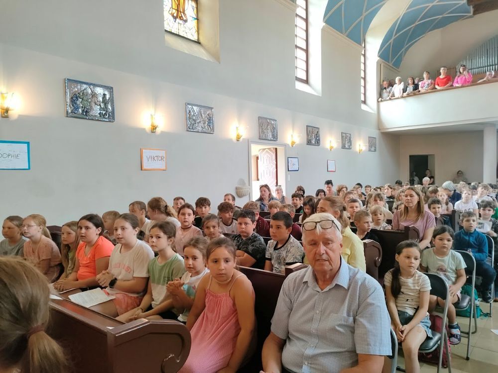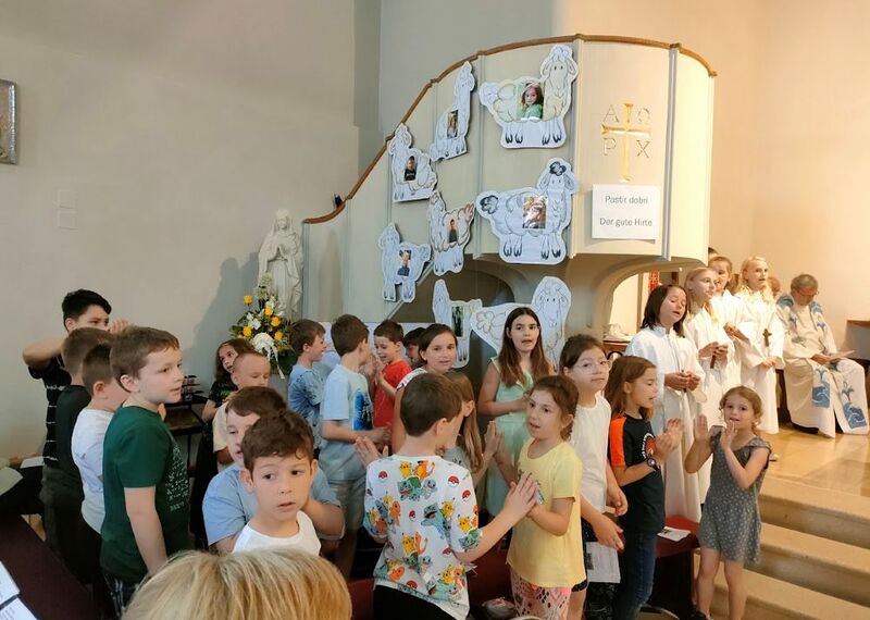 Svetu mašu su muzički oblikovala dicu pod peljenjem Martina Omischl i benda, čiji člani su rado pratili dicu, ka su oduševljeno i otvorenim i veselim srcem jačila. Glavnu ulogu su igrali školari iz Pinkovca, ki su sve pjesme znali napemet. Hvala svim vjeroučiteljem, ki su se skrbili, da se dica nauču jačke. Dica su bila uključena u svetu mašu i pri čitanju. Farnik Grandić se je s prodikom pripravio za dicu. Bilo je lipo viditi dijalog dice i farnika, znanje školarov i školaric iz vjeronauka. Po maši su sva dica i učitelji išli u dvoranu, kade su dicu čekali objed, nogomet i igre. Hvala svim u Pinkovcu, ki su sve dali od sebe da se ovo dičje shodišće dobro ugoda. Hvala svim farnikom, učiteljicam i učiteljem, ki su si zeli vrimena i truda i bili nazoči ovu srijedu.