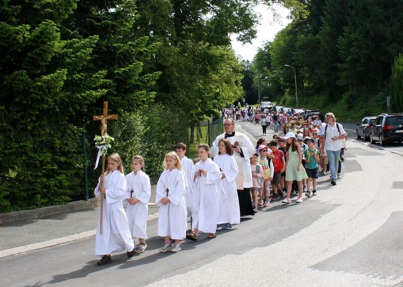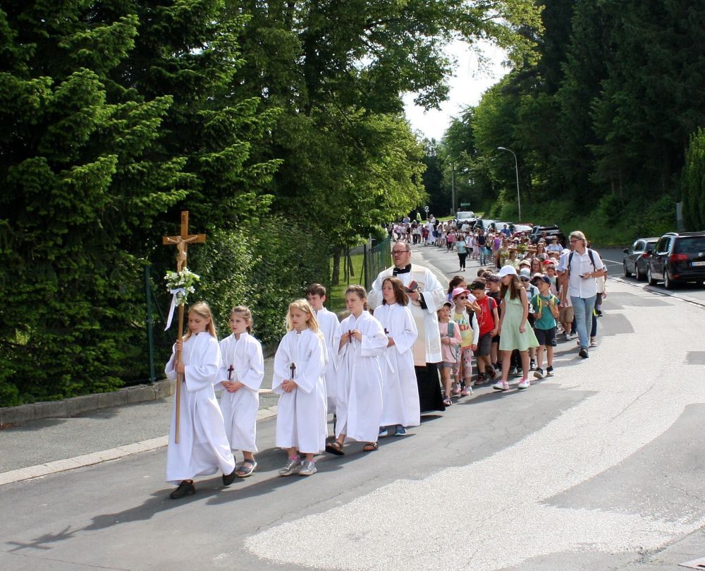 Dica iz cijeloga Gradišća su došla do škole u Pinkovcu, kade su ih čekali domaćini: učitelji i dica iz Pinkovca. Prve podravne riči je rekao domaći farnik a potom, u 10.00 uri se je ganuo ophod do crikve . Na putu su svi skupa molili i jačili pod peljanjem domaćega farnika. Škole su većinom na busi došli na shodišće, ali dica iz Nove gore su se piše otpravila na put. Svetačnu svetu mašu je služio domaći farnik David Grandić u koncelebraciji hrvatskih farnikov iz Gradišća. Pinkovačka crikva je bila do zadnjega mjesta puna. Lipo je bilo čuti kako dičji glas napuni crikvu i kako oduševljeno mali jaču pjesme, ke su se na vjeronauku naučila. Na početku svete maše je pozdravila stručna savjetnica Katja Marth sve nazočne a potom je direktorica Hrvatskoga vikarijata, dr. Kristina Glavanić pozdravila sve nazočne i prenjela najlipše pozdrave željezanskoga biškupa Egidije Živkovića.