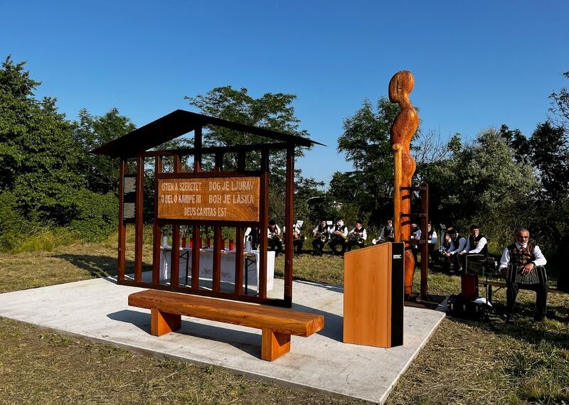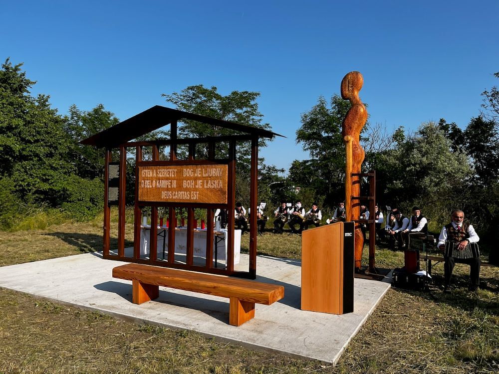 Umjetnik Daniel Bucur razložio je brojnim gostom povijest spomenika i naglasio, da bi svi tribali sa sobom zeti rečenicu pape Benedikta XVI. „Bog je ljubav“ i vjerovati u nju, osebujno u teški vrimeni.