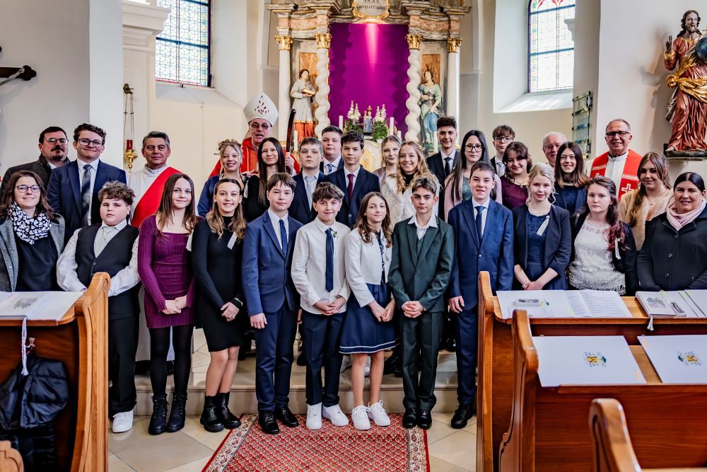 Subotu, 28. februara, je pred svetom mašom pozdravila limena glazba Rasporak pred crikvom u Pajngrtu gospodina biškupa. Pozdravne riči pred sv. mašom su uputili kurator Štefan Luxl, dva bermaniki, načelnik Kurt Fischer i farnik mag. Ivan Karall. Gosp. biškup je u svojoj prodiki prispodobio sv. bermanje s Olimpijskimi igrami, ke su pred kratkim završene. Bermaniki neka budu oganj i plamen.