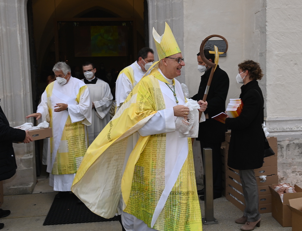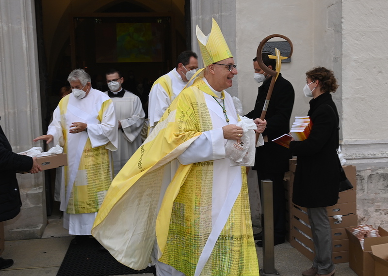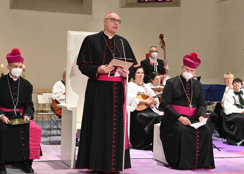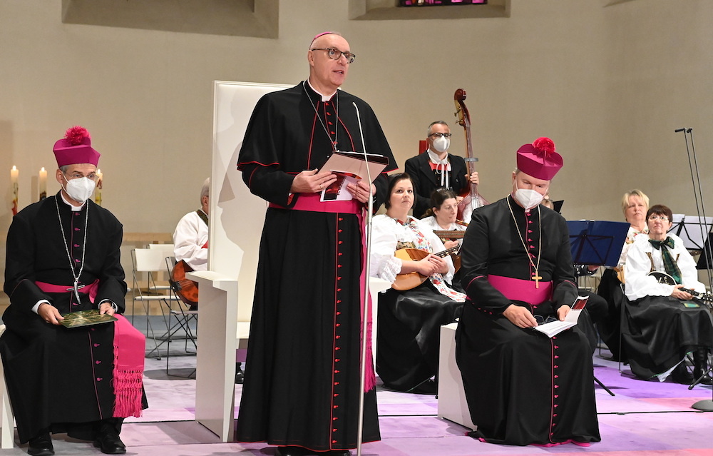 Srdačan pozdrav uputio je časnim gostom i svim nazočnim ter i putem live-streama povezanim generalni vikar kan. mmag. Michael Wüger. A srdačan je bio i pozdrav biškupa dr. Živkovića na jeziki gradišćanskih narodov pri uvodu u slavlje, ko je i dalje oblikovano većjezično u gradišćanskom duhu ter je svirao muzički sastav stolne crikve pod peljanjem dir. Thomasa Dolezala.