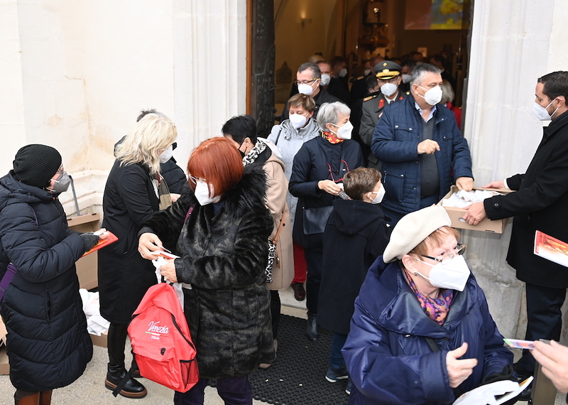 Prem kritike i nerazumivanja mnogih suvrimenikov pomažemo i si dilimo i danas s ljudi u nevolji i pri bigu - ovo je čin po peldi sv. Martina, na koga nas obvezuje zagovornik naše zemlje i naše biškupije, naglasio je biškup dr. Živković i dodao: “Pomoći i diliti more u vrimenu korona-pandemije i značiti: Daj se cipiti - Ti pomažeš sebi i Ti pomažeš i svojemu bližnjemu!”