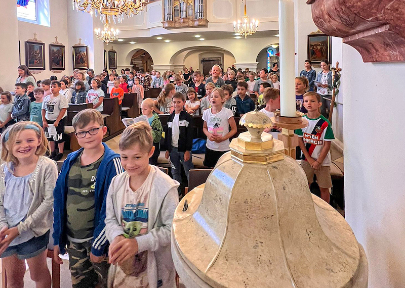 Utorak, 21. junija 2022. svečevali smo 30. hrvatsko dičje shodišće u crikvi u Vulkaprodrštofu. Nazočna bila su dica osnovnih škol iz dužnobrižničkoga područja Trajštofa, Uzlopa, Otave i Vulkaprodrštofa i jedna mala grupa školaric i školarov iz posebne škole Željezna. Svi drugi školari i sve druge školarice iz dvojezičnih škol u Gradišću su imali priliku svečevati mašu online.