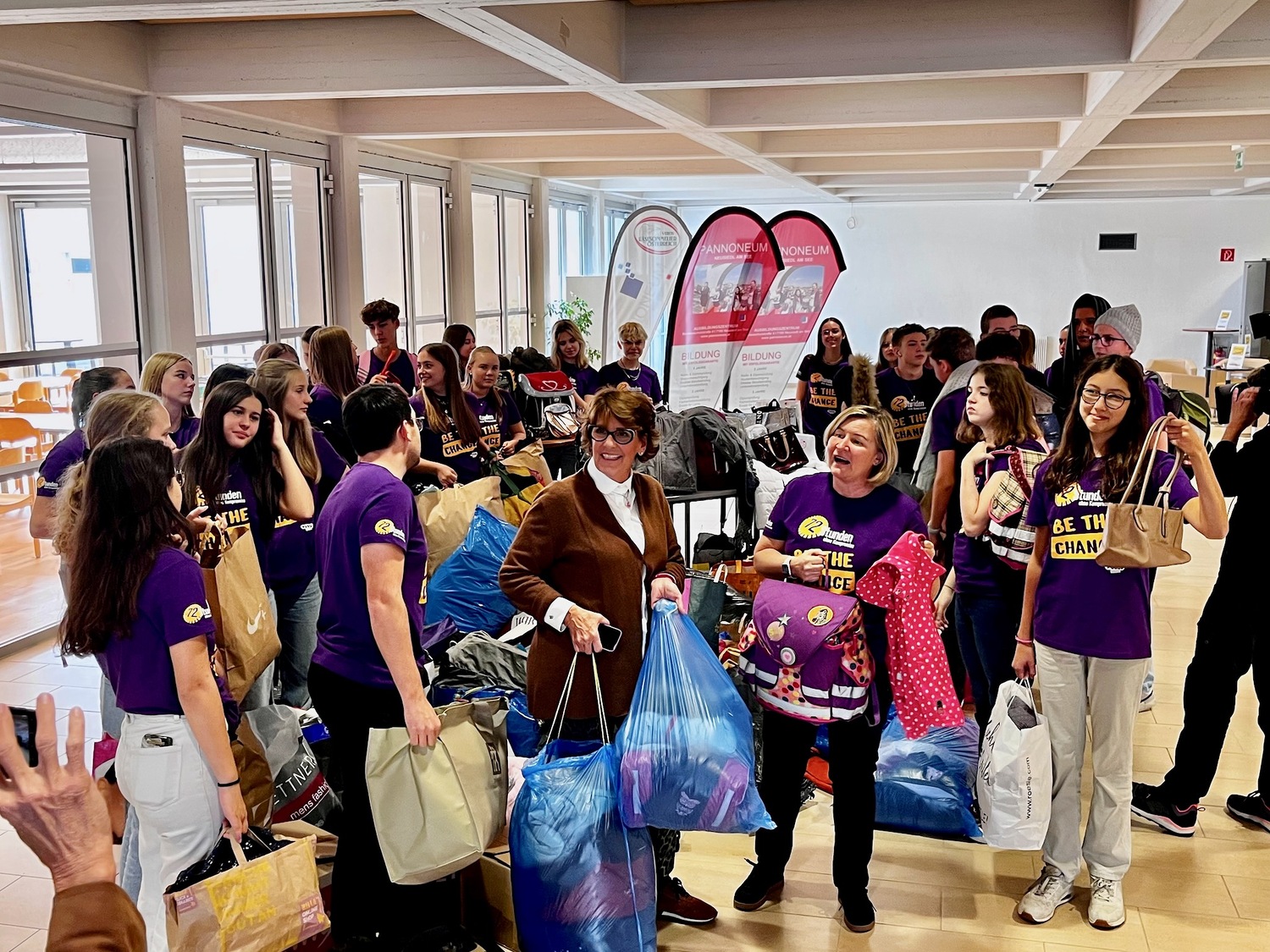 18 Schülerinnen und Schüler der 1CW der HLW Neusiedl am See sammelten unter der Regie von Gruppenleiterin Claudia Peter und Projektbetreuer André Thaler gebrauchte und neuwertige Schultaschen und Schulrücksäcken für Kinder, die sich keine eigenen leisten können.