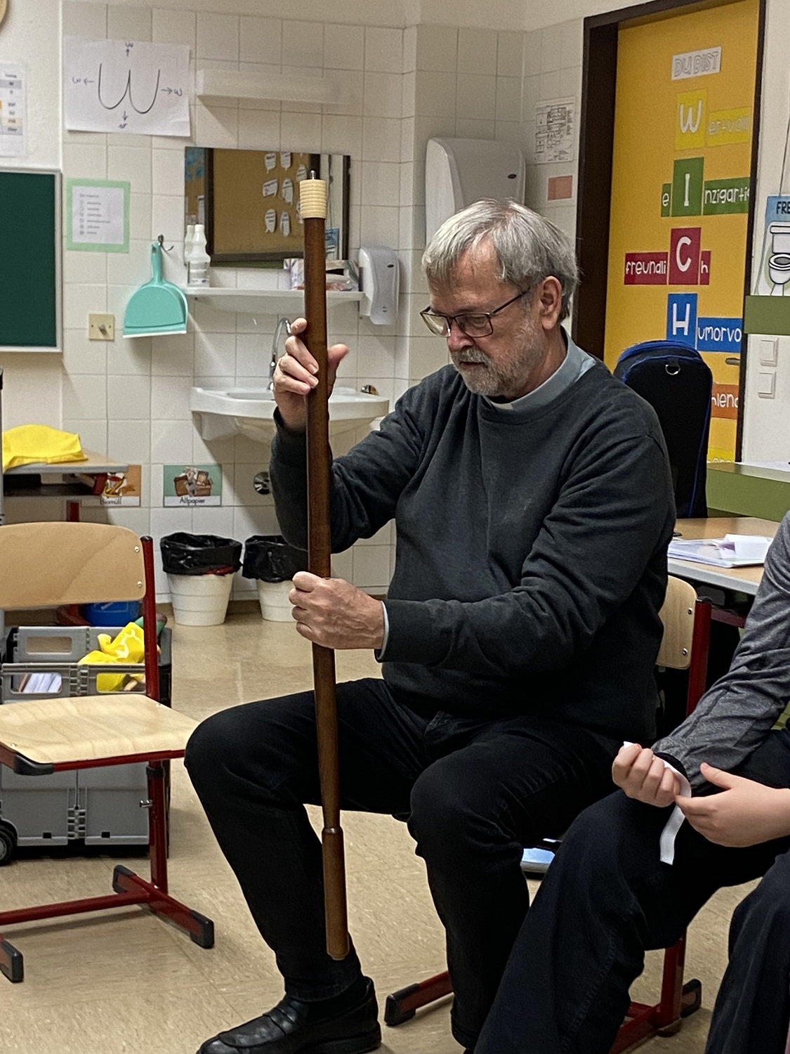 Nach einer stimmungsvollen gemeinsamen Adventandacht im Turnsaal, die von Religionslehrerin Maria Wiesinger zum Thema „Licht im Advent“ gestaltet wurde, nahm sich der Herr Bischof Zeit für den Besuch von drei Klassen. Die mitgebrachte Mitra und der besondere Bischofsstab des Herrn Diözesanbischofs weckten großes Interesse bei den neugierigen Schüler:innen. Besonders beeindruckt zeigte sich der Herr Bischof von einer Mehrstufenklasse, in der Schülerinnen und Schüler aller vier Schulstufen engagiert Fragen stellten und miteinander ins Gespräch kamen. Ein kulinarisches Beisammensein mit dem Kollegium bot anschließend Gelegenheit zum persönlichen Austausch.