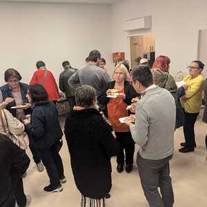 Nach dem Vortrag blieb ausreichend Zeit für einen offenen Austausch, den viele der Anwesenden nutzten. Bei Brot und Wein kamen die Besucher ins Gespräch und nahmen auch die Gelegenheit wahr, mit dem Referenten direkt in Kontakt zu treten. Diese persönliche Interaktion wurde von den Teilnehmer:innen besonders geschätzt.
