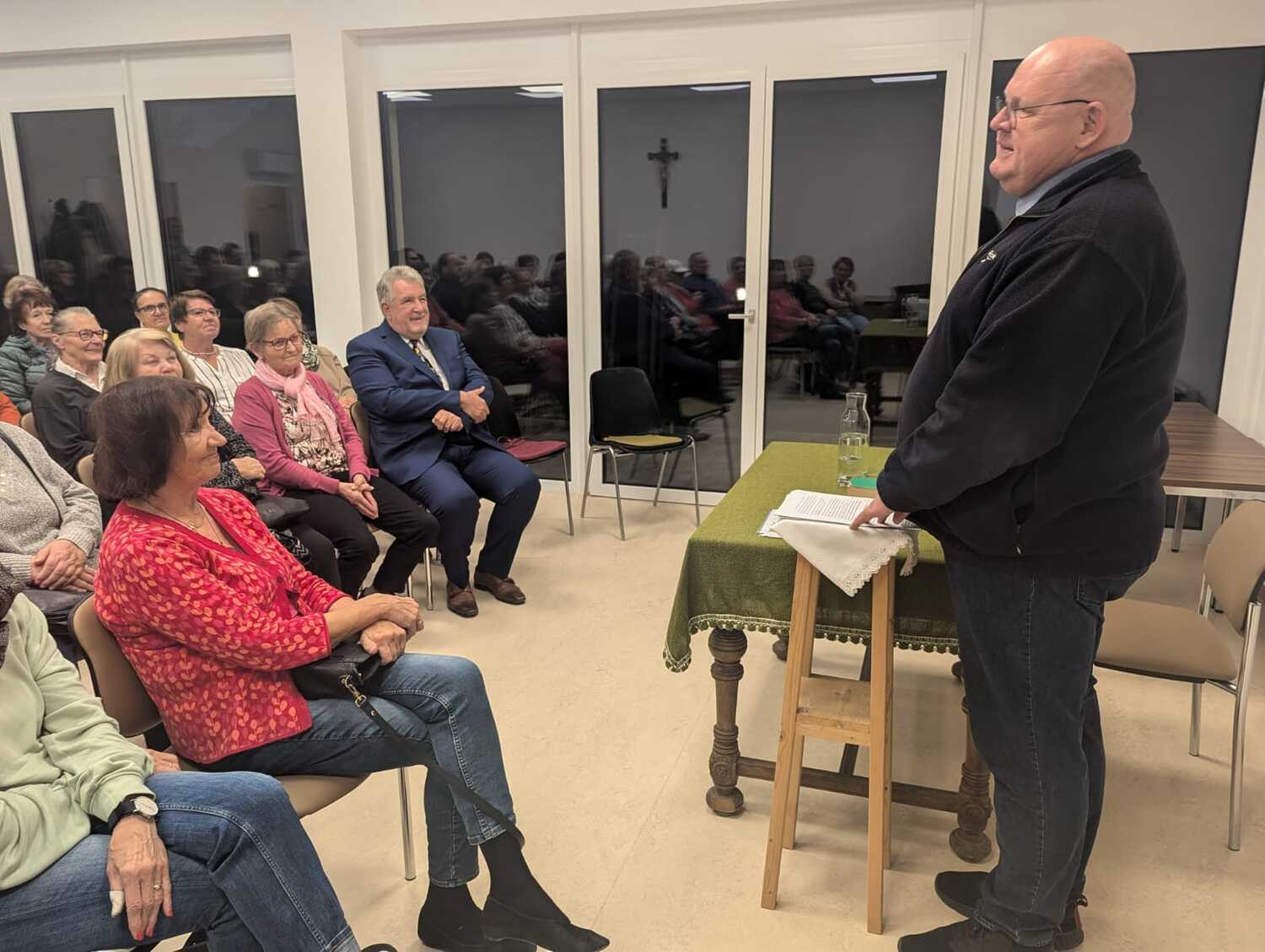 Dechant Karl Opelka eröffnete den Abend mit einer herzlichen Begrüßung von Prof. Dr. Essmann und den zahlreichen Teilnehmer:innen. Der Referent fesselte die Zuhörer mit seinem lebendigen und anschaulichen Vortrag. Mit seiner fundierten Expertise beantwortete er die großen Fragen des Lebens und des Jenseits, was beim Publikum auf großes Interesse stieß.
