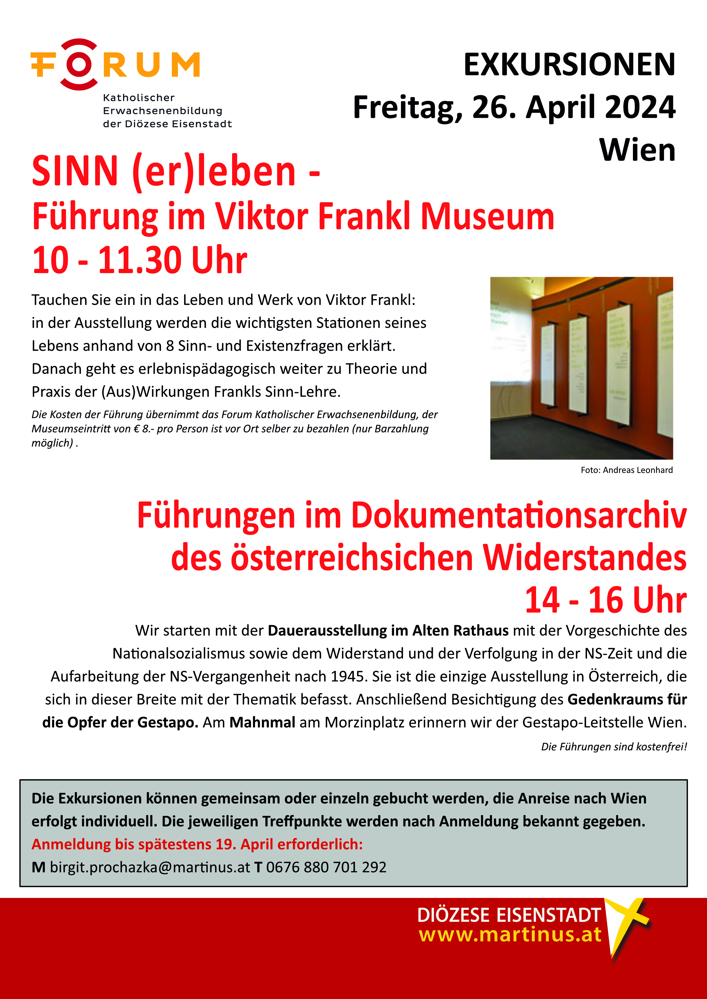 Die Veranstaltung ist kostenfrei und kann auch mit der Führung im Viktor Frankl Museum am Vormittag verbunden werden.
