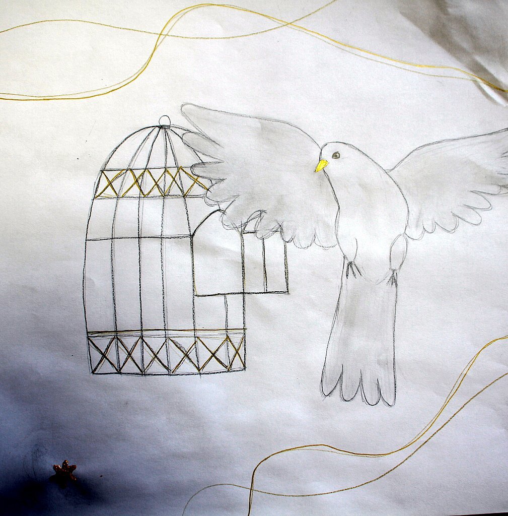In den Hungertüchern, die die Schülerinnen und jeder Schüler malen, und bringen neben Verletzungen und Krisen auch Wandlungsmomente durch verschiedene Hoffnungssymbole zum Ausdruck.