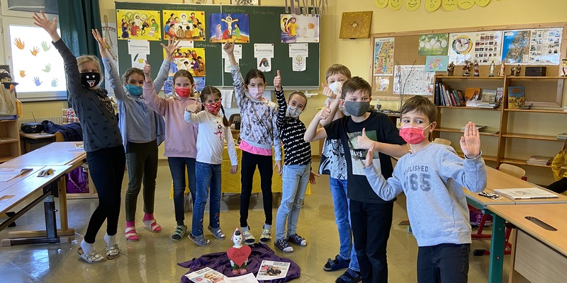 In der Fastenzeit begleitete uns unser DANKE-SPAREFROH in jeder Religionsstunde. Jeder und jedem stand es frei unseren neuen Begleiter zu füttern.