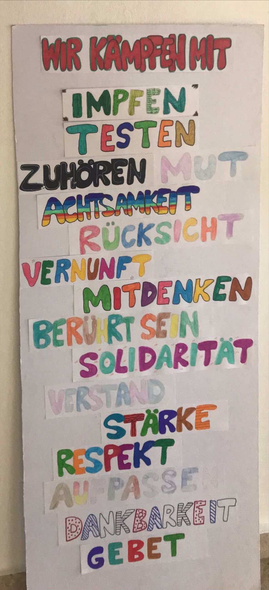 Im Religionsunterricht haben wir überlegt, was wir tun können. Wie wir mithelfen können und wonach wir uns in dieser Zeit besonders sehnen.