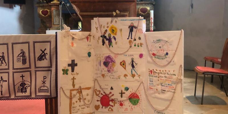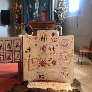 Gemeinsam wurde philosophiert und das Herz erforscht. Dabei entstanden kreative Heftarbeiten und ein gemeinsames Fastentuch zu den Fragen: