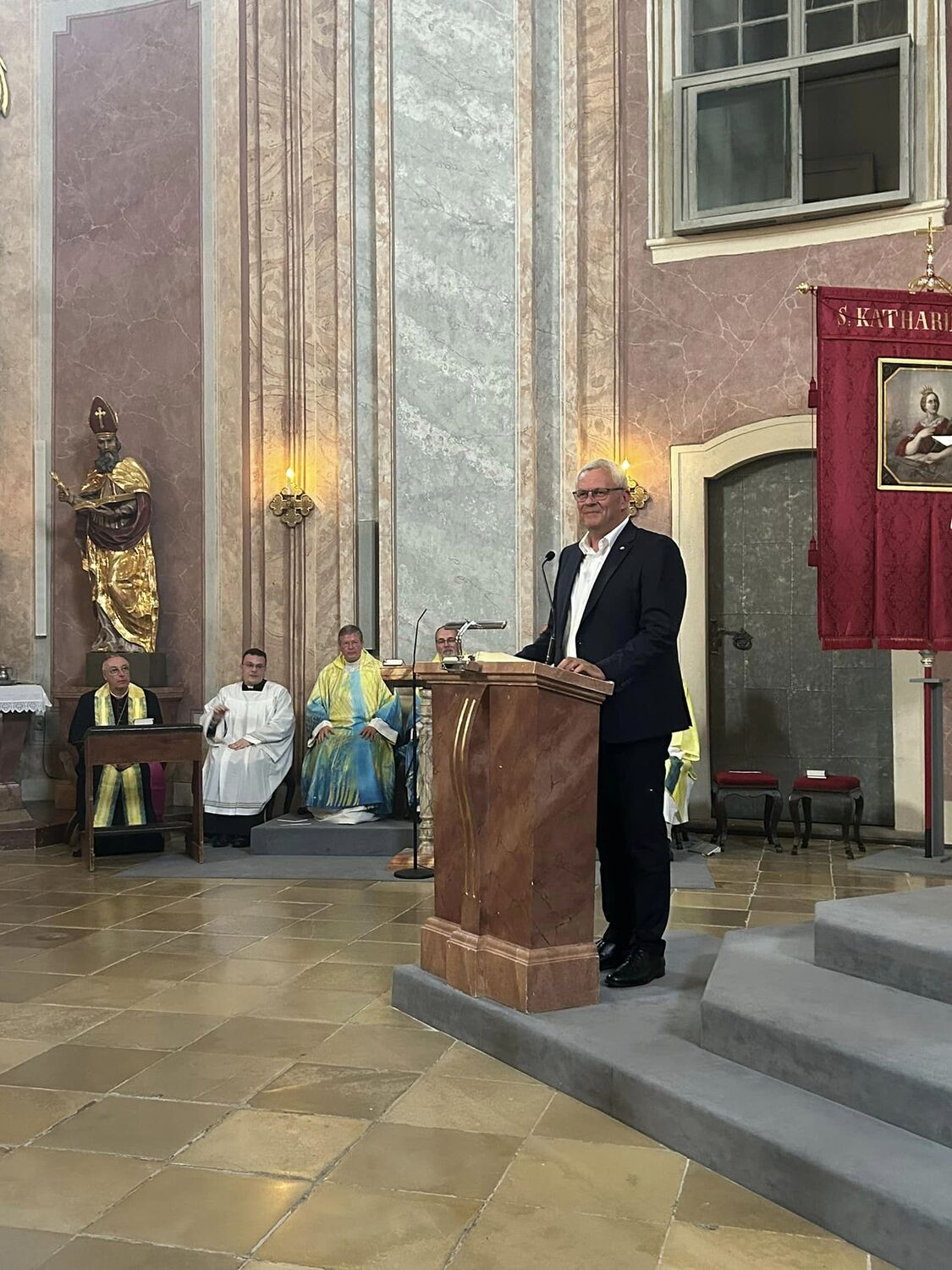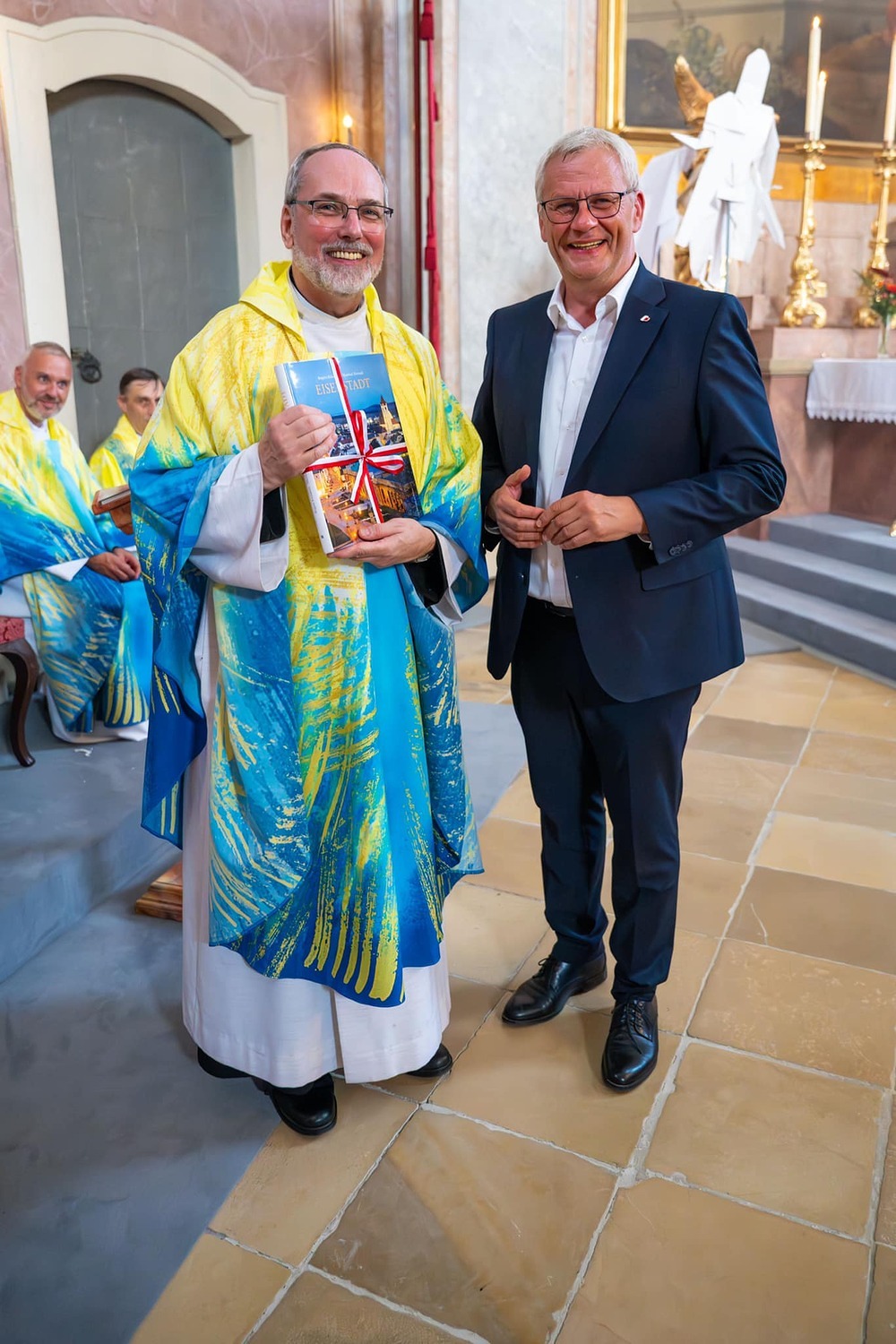 Bürgermeister Steiner betonte die gute Zusammenarbeit von Stadt und Kirche, insbesondere mit dem "Heiligen Berg" am Oberberg. Er bot die weitere Unterstützung der Stadt für kommende gemeinsame Projekte an.