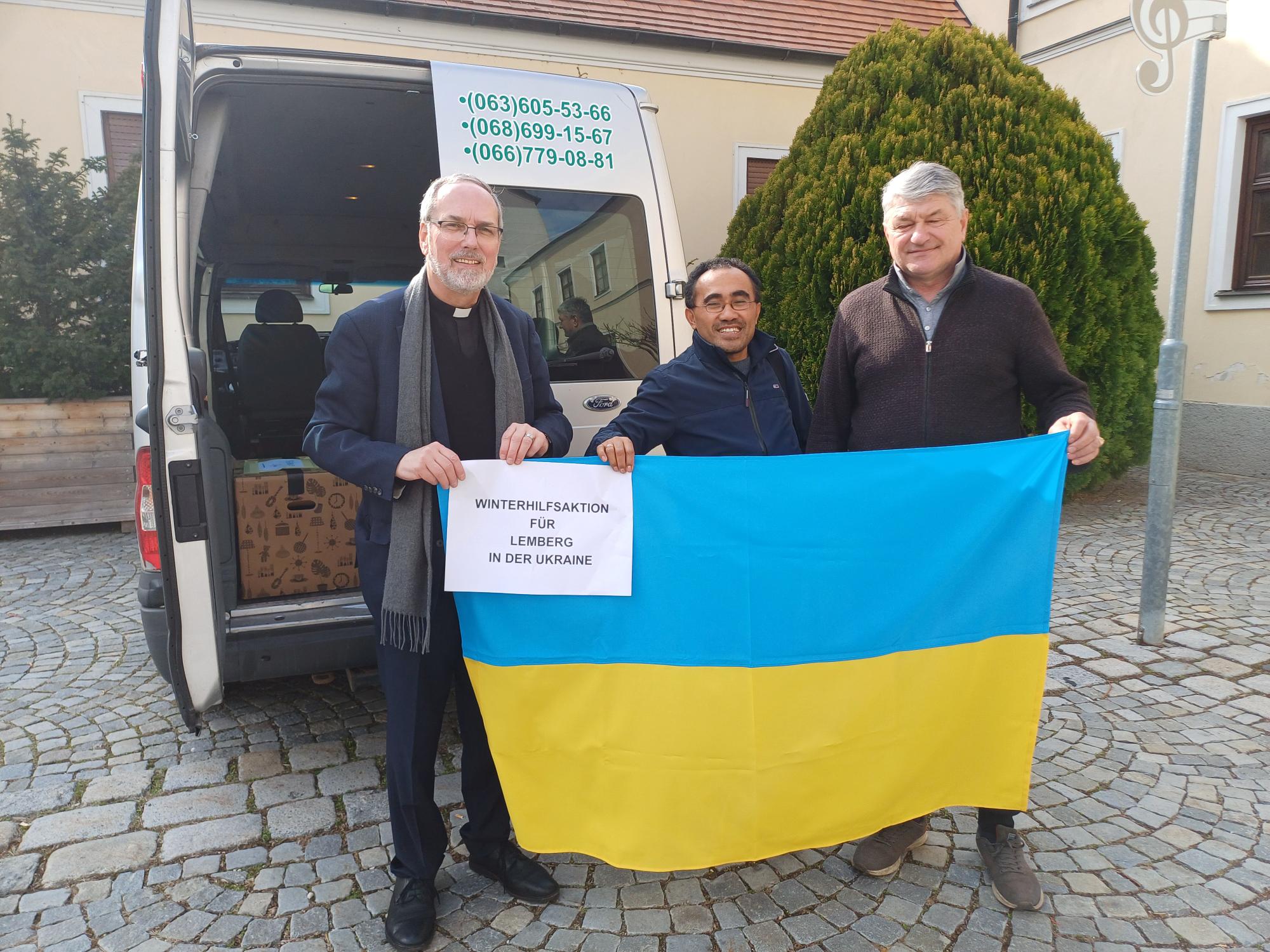 Im letzten Winter 2025 haben wir (Pfarre Eisenstadt-Oberberg mit Klemens Hofbauer-Komitee, Wien) eine Aktion für die Ukraine erfolgreich durchgeführt: Medikamente, hygienische Artikel und Spenden wurden mit einem Bus nach Lemberg gebracht, u.a. für das kath. Krankenhaus.